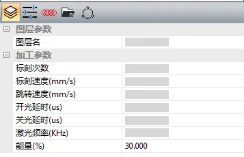 正常開機(jī)后,將能量調(diào)至30%以下,其余參數(shù)不變(操作界面如下圖所示),空打出光預(yù)熱約10分鐘,再進(jìn)行生產(chǎn)加工。